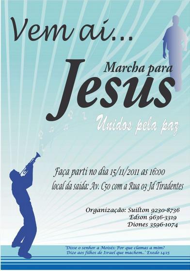Amanhã Será Realizado no setor Jardim Tiradentes a realização da marcha para Jesus com o Objetivo de levar, mostrar a palavra de Deus para aqueles que o buscam incansávelmente, e para aqueles que estão de fora dessa vida com Cristo, Venha você também participar conosco e mostrar a Cristo para este povo!!